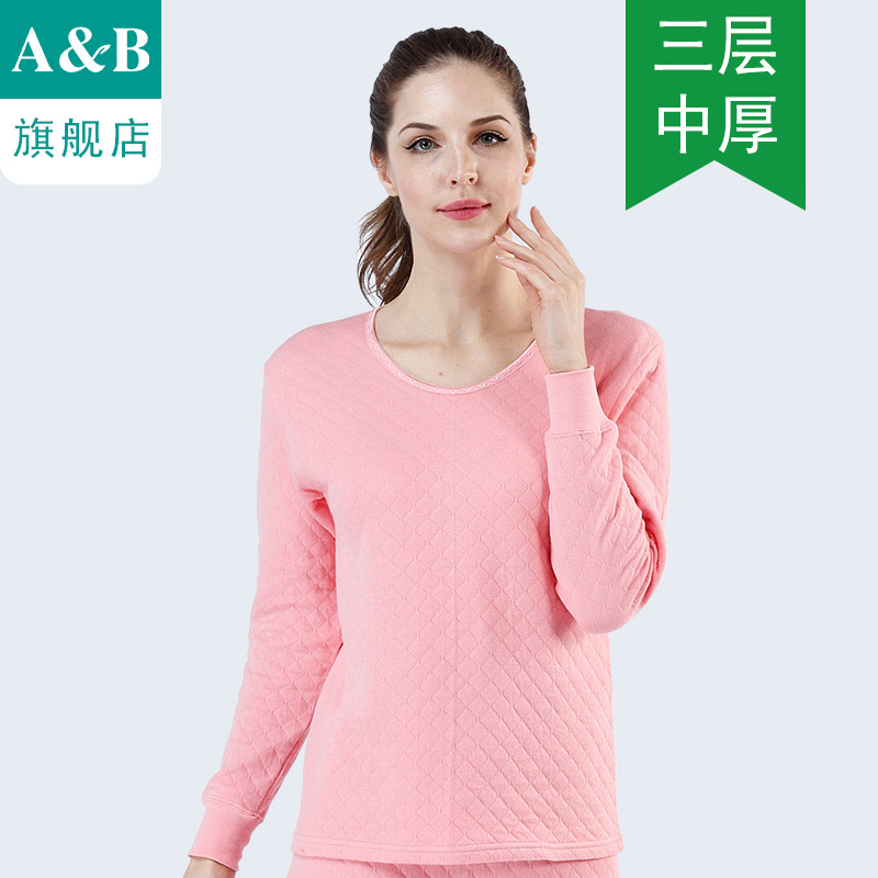 A&Bab内衣女士保暖上衣精梳棉三层夹棉圆领低领保暖秋衣单件Y854