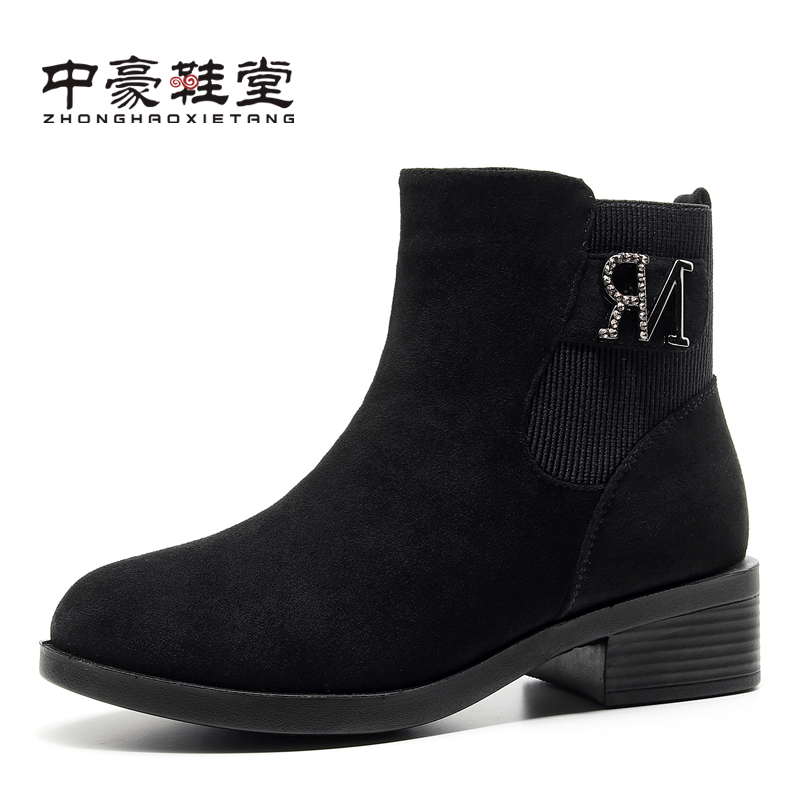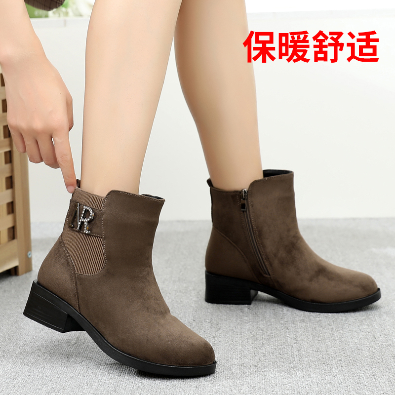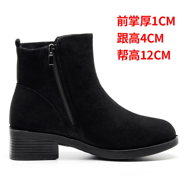 靴子冬季 加绒保暖时装 工作防滑棉靴 女靴中跟短靴女棉鞋 老北京布鞋