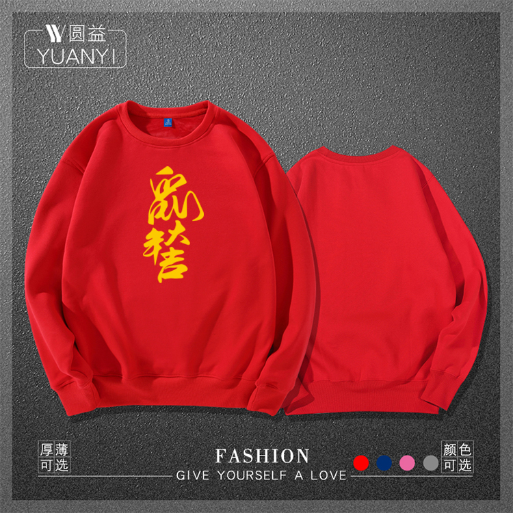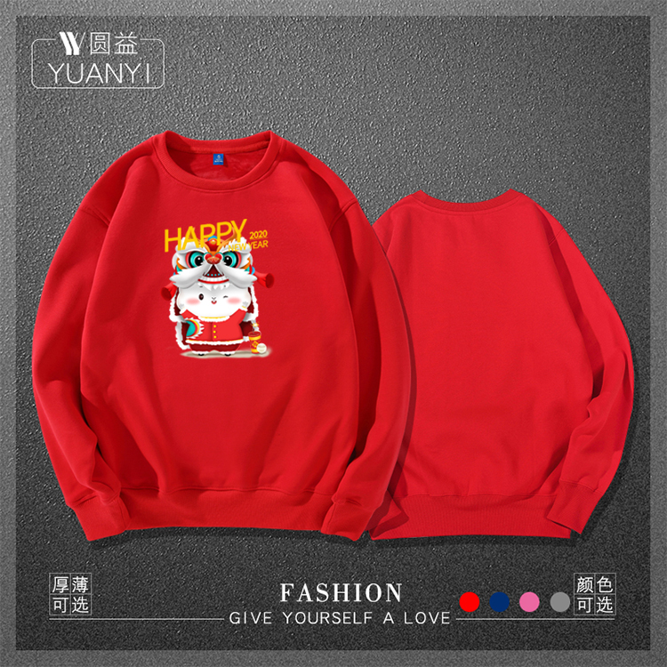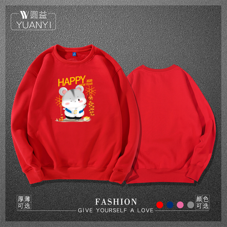 2020过年本命年卡通鼠年加绒圆领情侣卫衣大红色宽松百搭潮流冬装