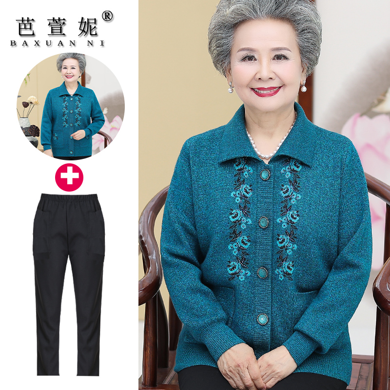 毛衣开衫 中老年人妈妈秋冬装 奶奶装 女装 加绒外套老太太加肥加大码
