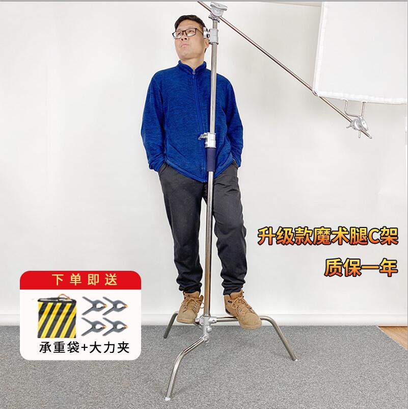 Hugfree专业摄影魔术腿支架不锈钢灯架重型C型摄影脚架40寸C架闪光灯支架旗板柔光纸横杆顶灯架横臂杆背景架