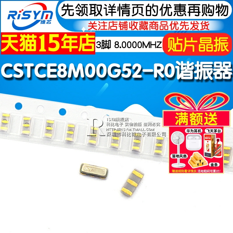 晶振 CER RES CSTCE8M00G52 10PF 谐振器 8.0000MHZ 贴片3脚
