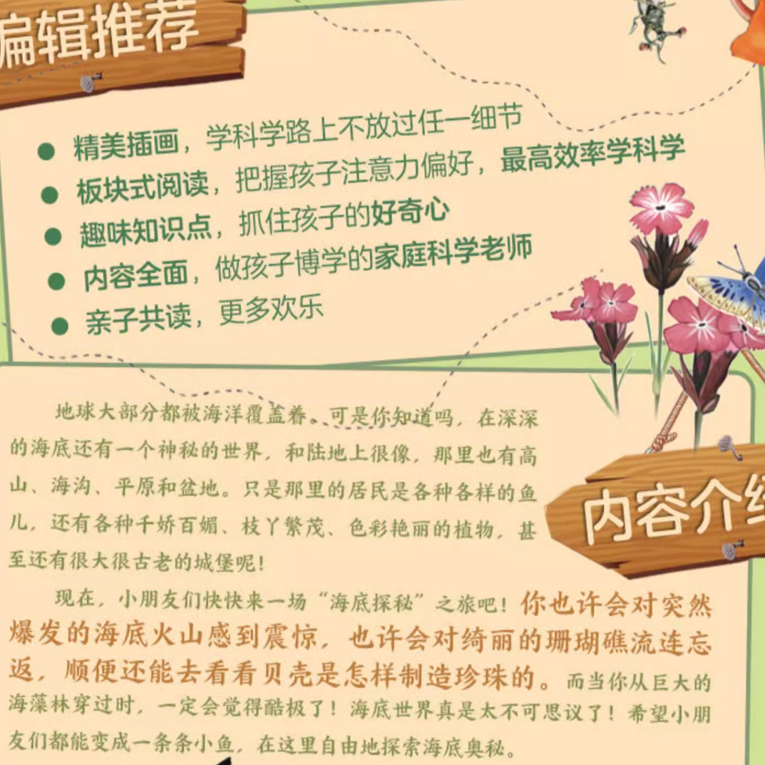 6岁儿童科普科普绘本儿童绘本 让孩子着迷 海底世界 本书采用彩色印刷图片精美将动物形象栩栩如生展示小朋友面前 第一堂自然课