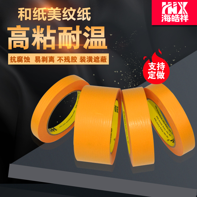 和纸分色纸美纹纸耐高温胶带244美纹纸胶带黄无痕3D打印 模型遮盖汽车喷漆喷涂遮蔽胶带船舶胶纸手撕胶带无痕