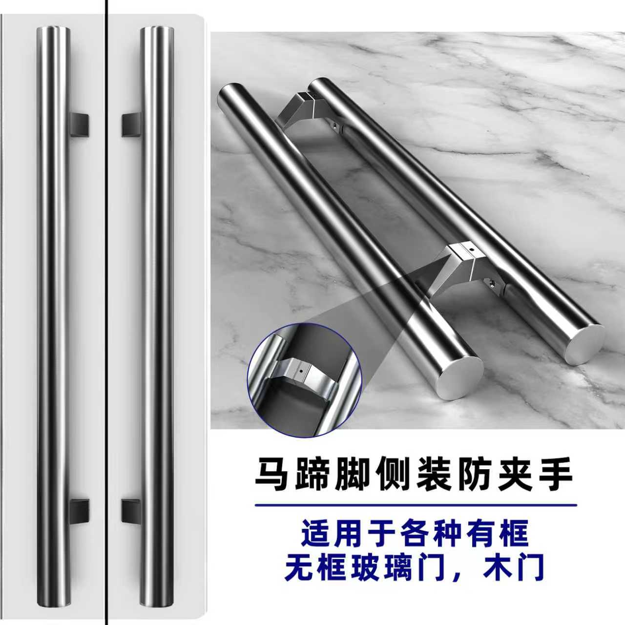 钢化玻璃门拉手高端不锈钢双开大门推拉把手实木门扶手柄黑色无框