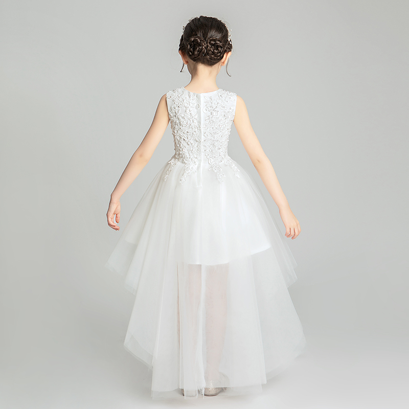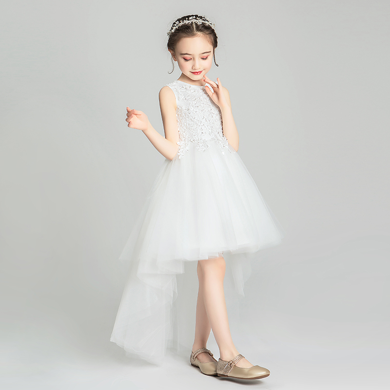 儿童晚礼服女小花童公主裙女孩宝宝婚纱白色洋气演出服蓬蓬轻奢薄