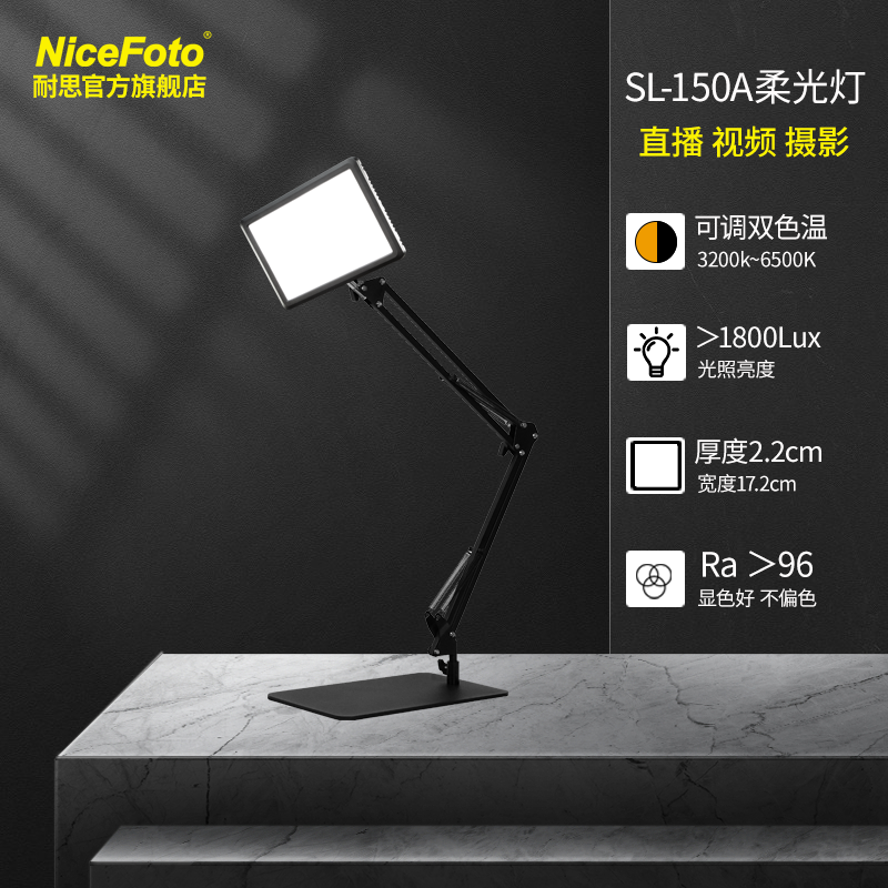 NiceFoto耐思SL 150A可调色温摄影灯轻薄平板灯主播摄像补光灯单反相机打光灯内置锂电便携外拍