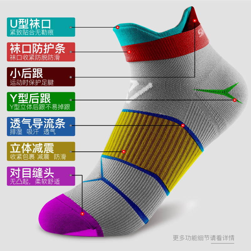 舒跑袜子男防滑专业运动袜跑步透气男士 健身袜马拉松春夏 浅口薄款