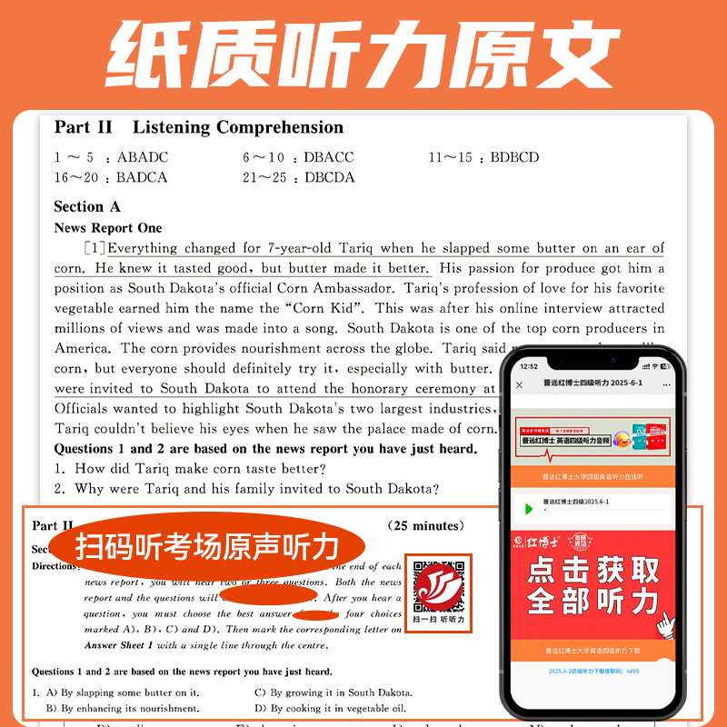 cet4真题英语四级历年真题赠词汇 现货官方店备考2025年12月大学英语四级考试 听力改革新题型CET 晋远图书 英语真题真练
