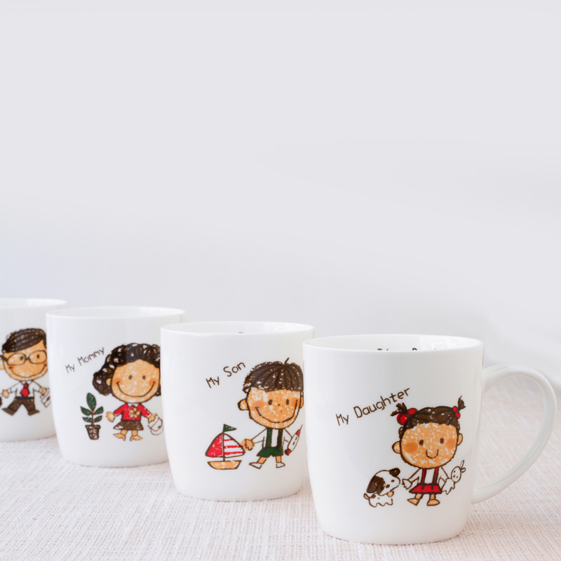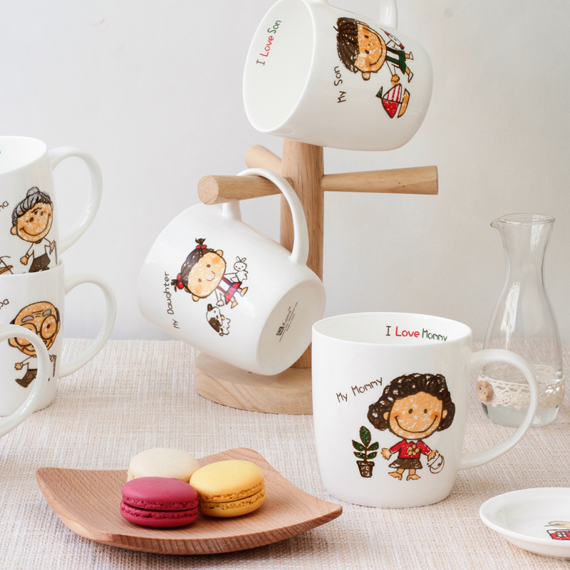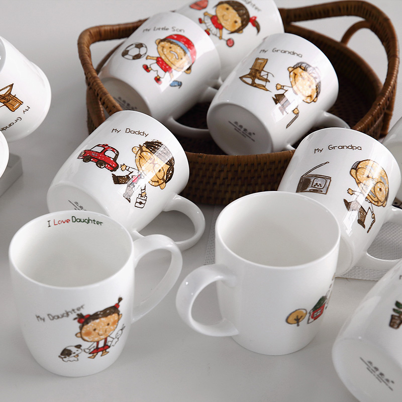 幸福一家可爱卡通创意水杯牛奶杯茶杯马克杯亲子家庭套装 陶瓷杯子