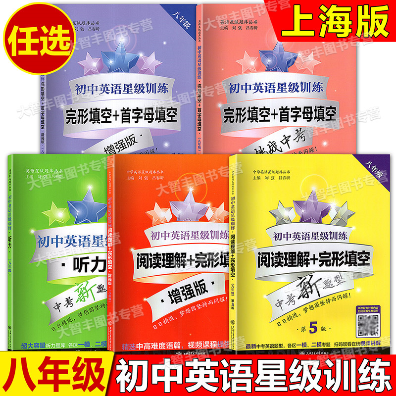 完形填空 增强版 六七八九 初中英语星级训练 6789中考新题型六年级七年级八年级 听力 阅读理解 首字母填空 交大之星 语法与词汇