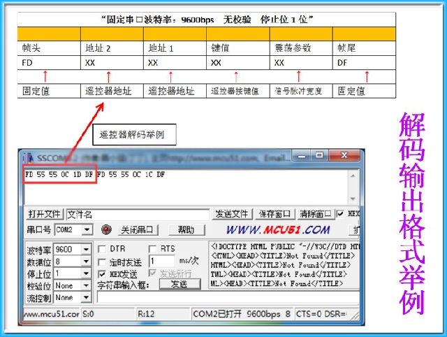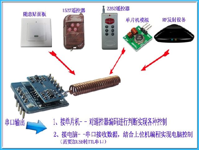 串口通信支持2262 315 模块 RF射频解码 1527 433Mhz遥控器解码