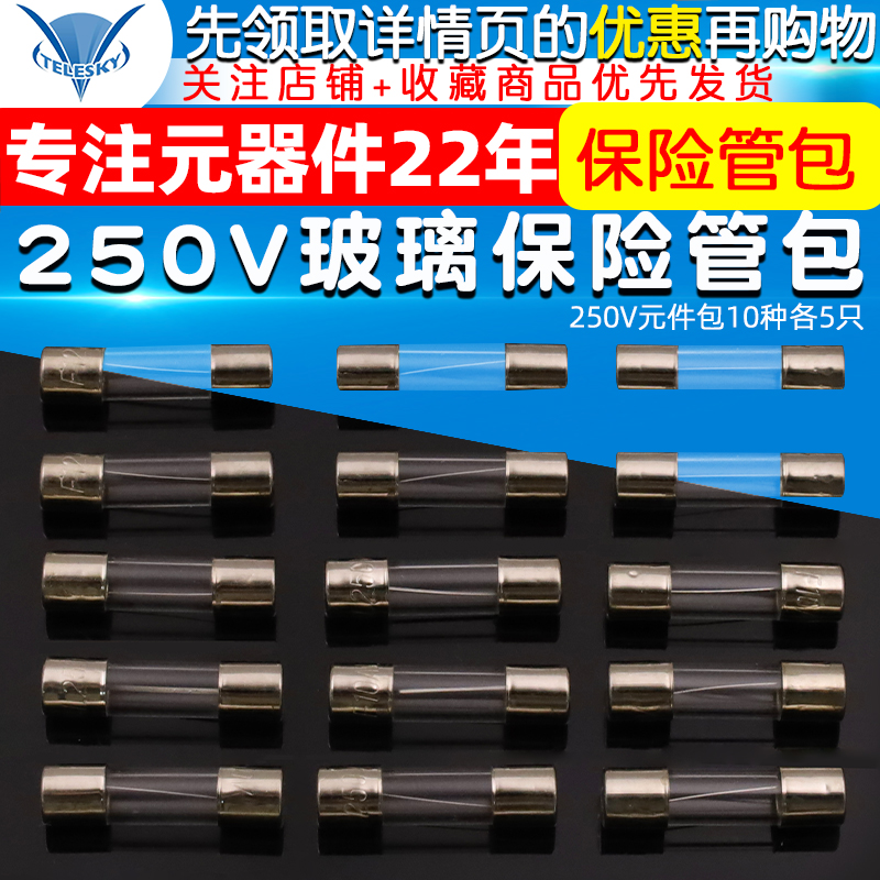 20MM 10A 12A 件包10种各5只 保险管包玻璃保险丝 250V元