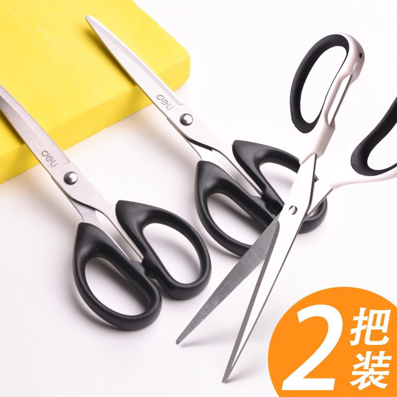 得力剪刀家用黑刃不锈钢剪子拆快递剪刀不粘胶安全手工剪刀办公用