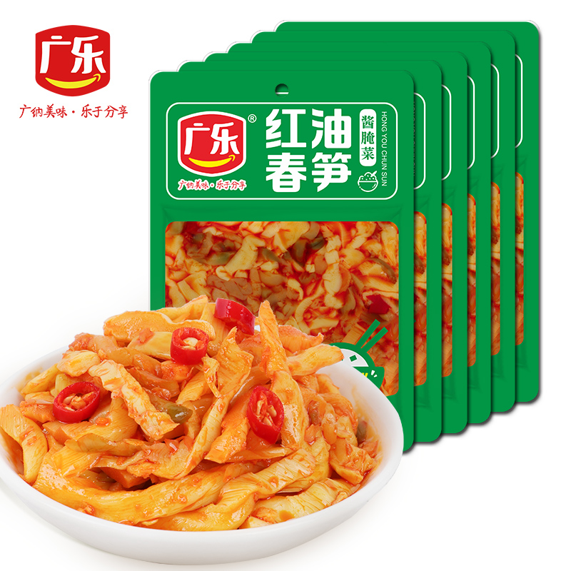 四川特产泡菜咸菜即食 香辣榨菜早餐 广乐红油春笋下饭菜180g 6包