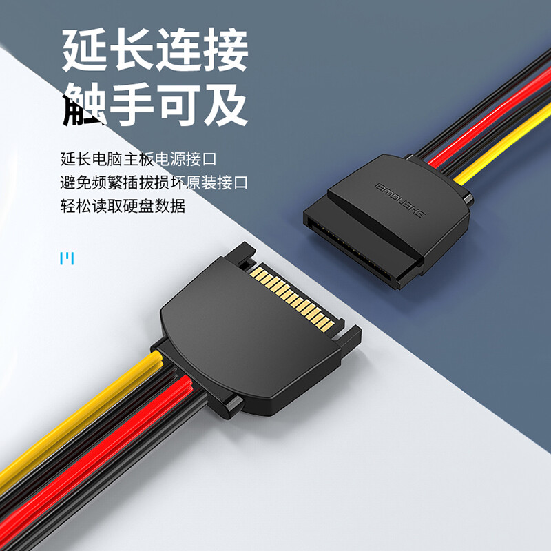 胜为SATA硬盘电源线15pin公对母延长线4pin一分二转接头WSPC302G