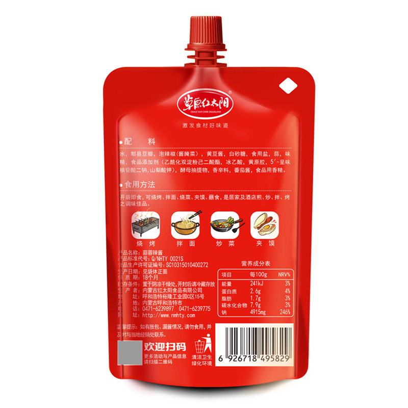 草原红太阳蒜蓉辣酱125g烧烤刷酱羊肉串板筋甜辣酱炒海鲜拌面蘸食