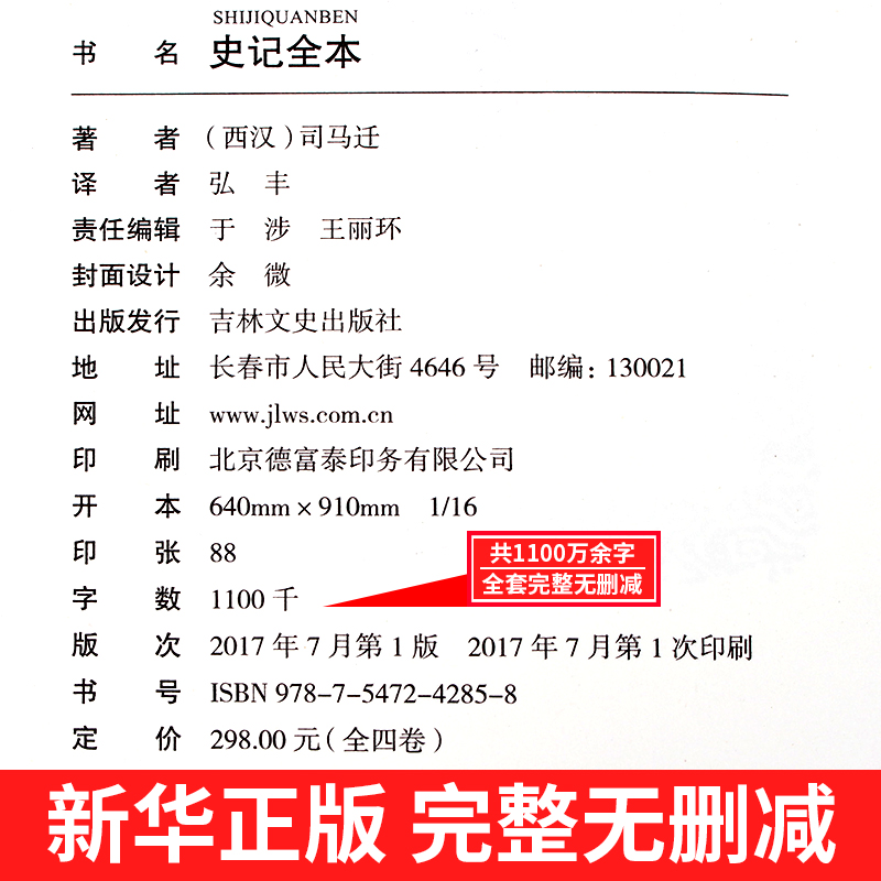 白话史记全册 司马迁原版 中国通史 书籍 中国历史书籍畅销书 资治通鉴 史记全本 中华书局 正版 青少年成人版