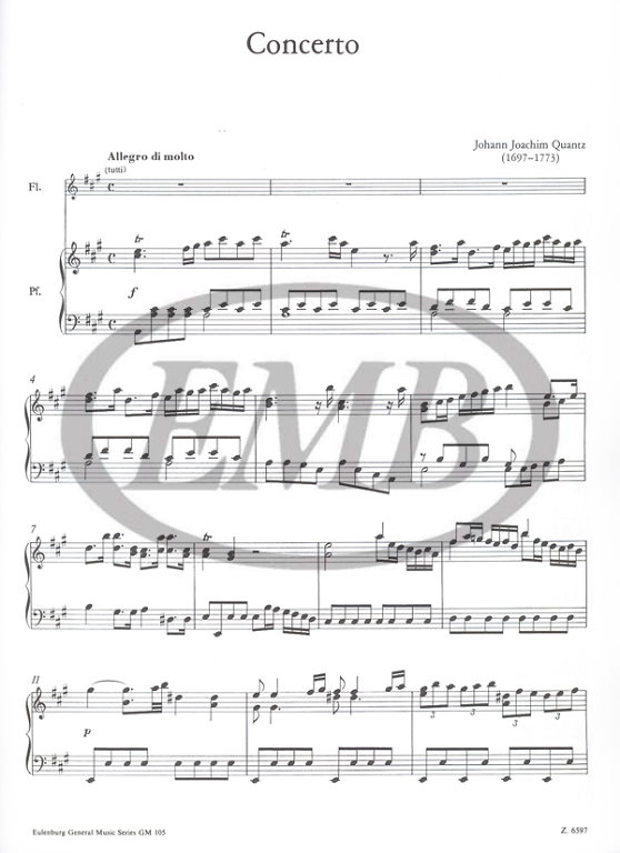 maggiore 附钢琴伴奏 乐谱书 原版 匡茨 Johann Flute 布达佩斯 Concerto Joachim Z6597 Piano Quantz A大调长笛协奏曲