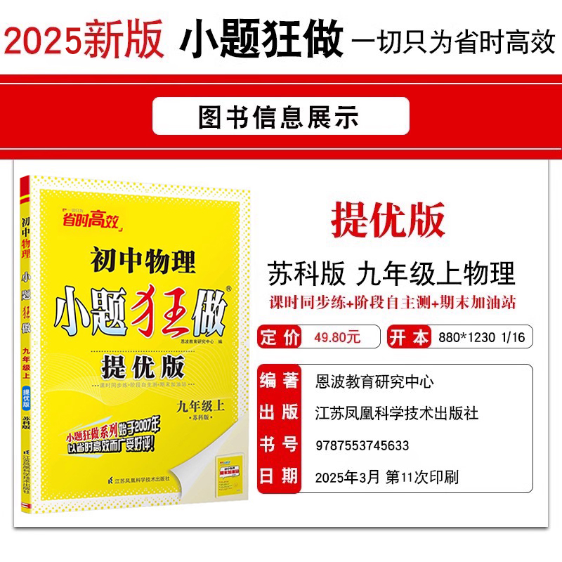 九年级上册苏科版 小题狂做提优版 高考9年级上学期初三同步练习自主测试卷教辅恩波附赠答案小帮手 初中物理 恩波教育2025年秋新版
