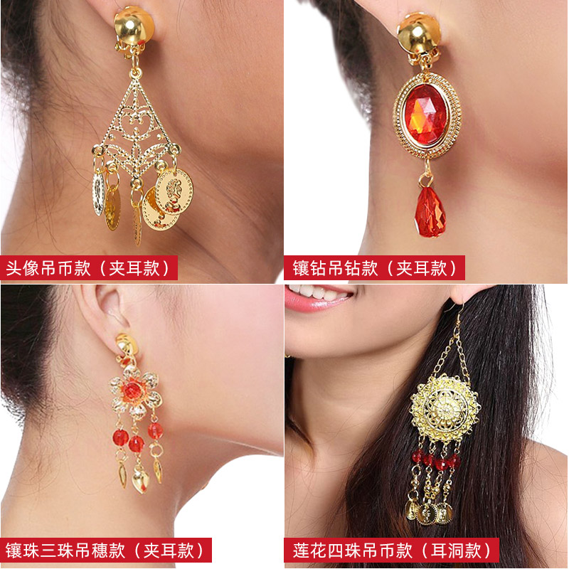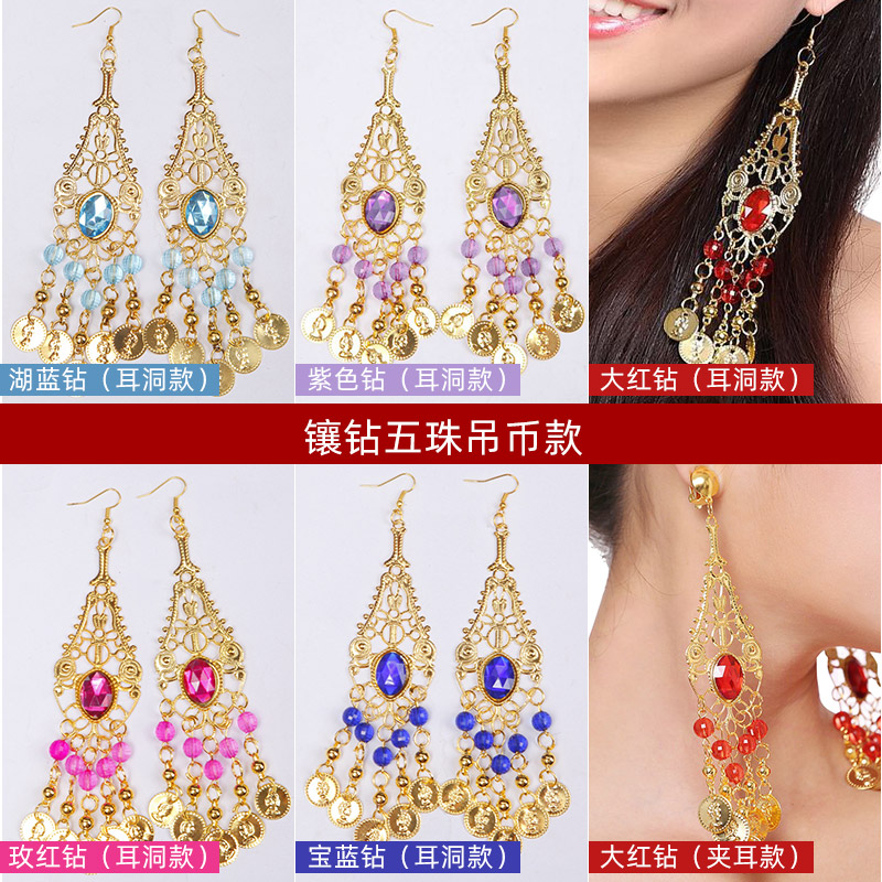东方舞套装 印度舞镶钻吊币耳坠 表演耳饰配饰品 肚皮舞耳环 飞魅