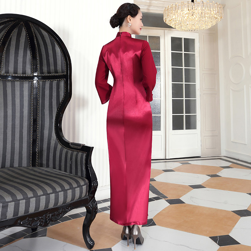 断码 盘扣旗袍领连衣裙收腰长袖 秒杀 新中式 缎面气质 太平鸟女装