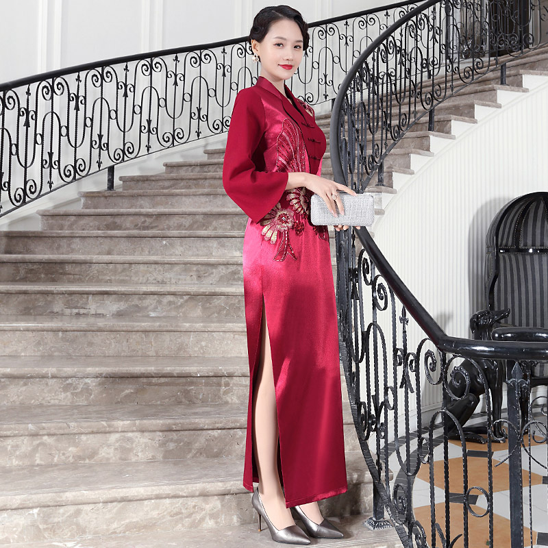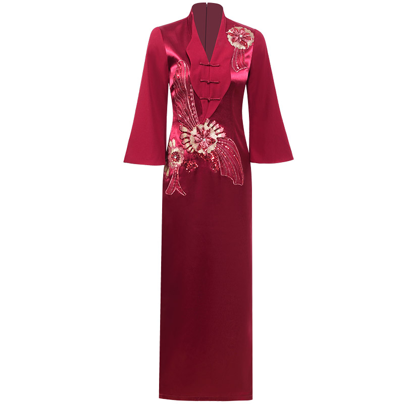 新中式 新款 国风显瘦改良旗袍裙 毛呢连衣裙女2025冬季 喜婆婆婚宴装