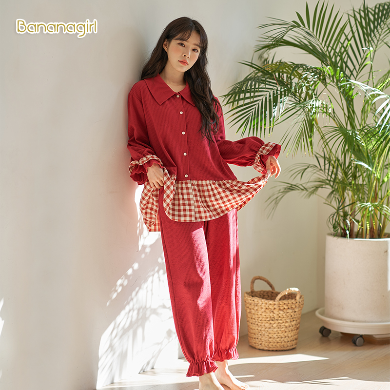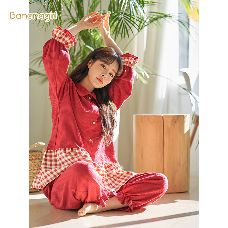 简约甜美结婚男士 Bananagirl睡衣纯棉居家服春秋女士情侣套装 长袖