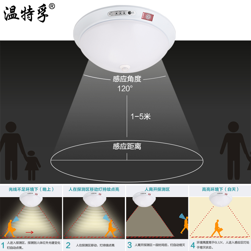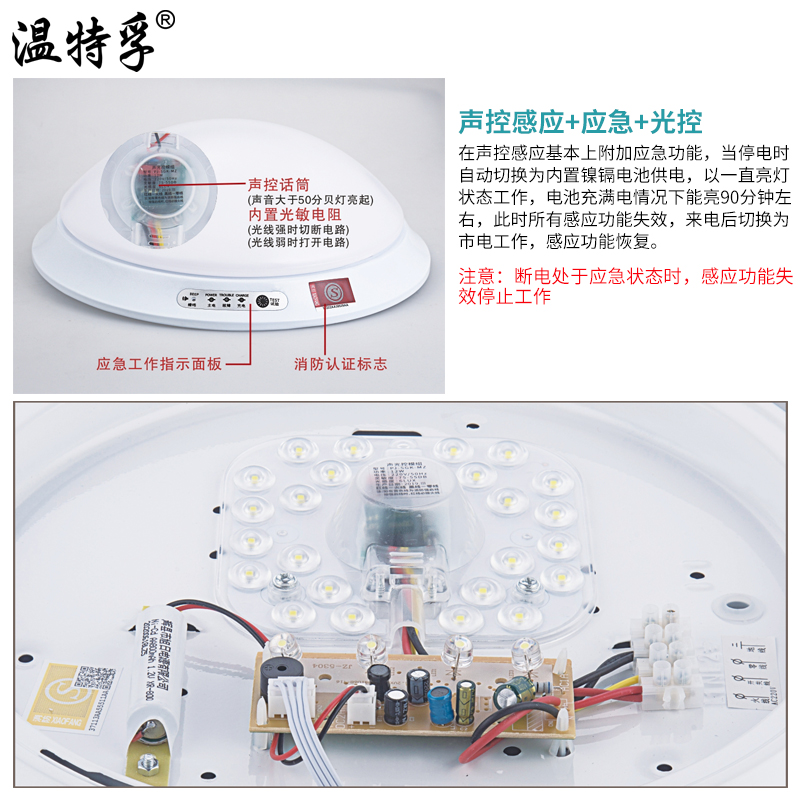 温特孚消防应急吸顶灯led感应应急灯楼道走廊过道疏散逃生照明灯
