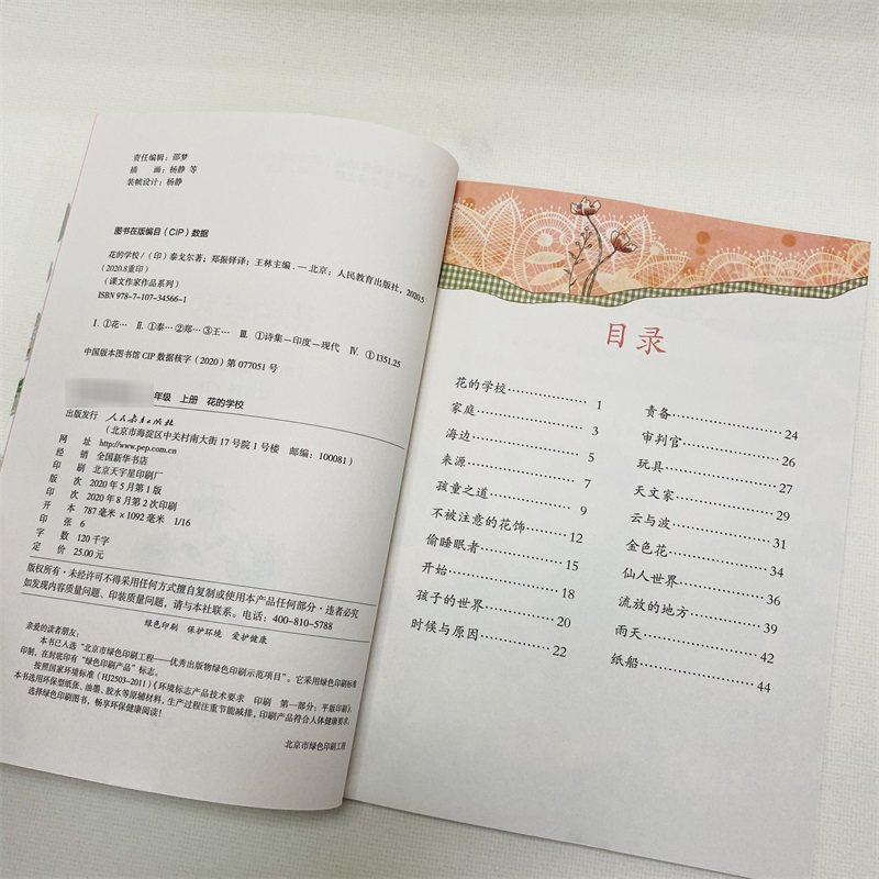 著 3年级上册课文作家作品系列语文教材书籍 人民教育出版 花 阅读经典 泰戈尔 社小学生课外同步推荐 儿童文学书籍 学校
