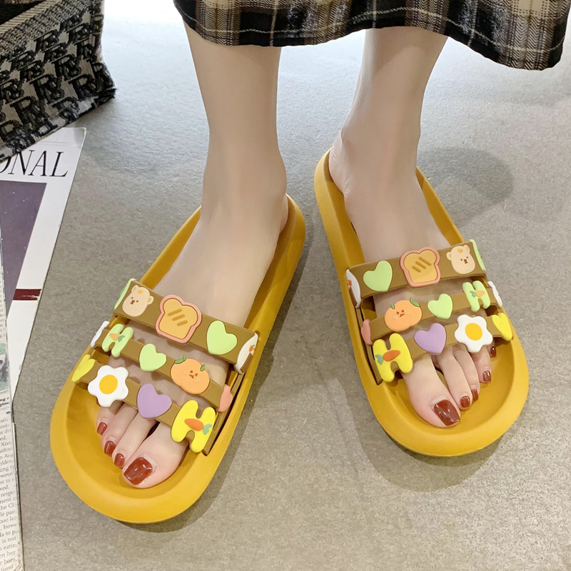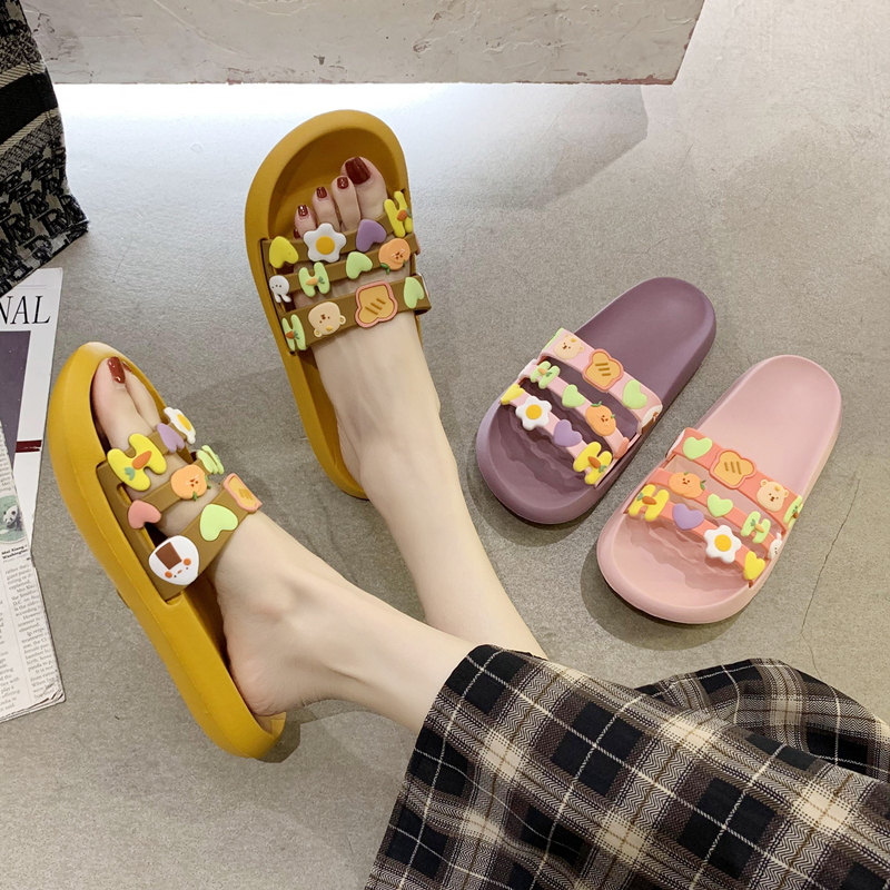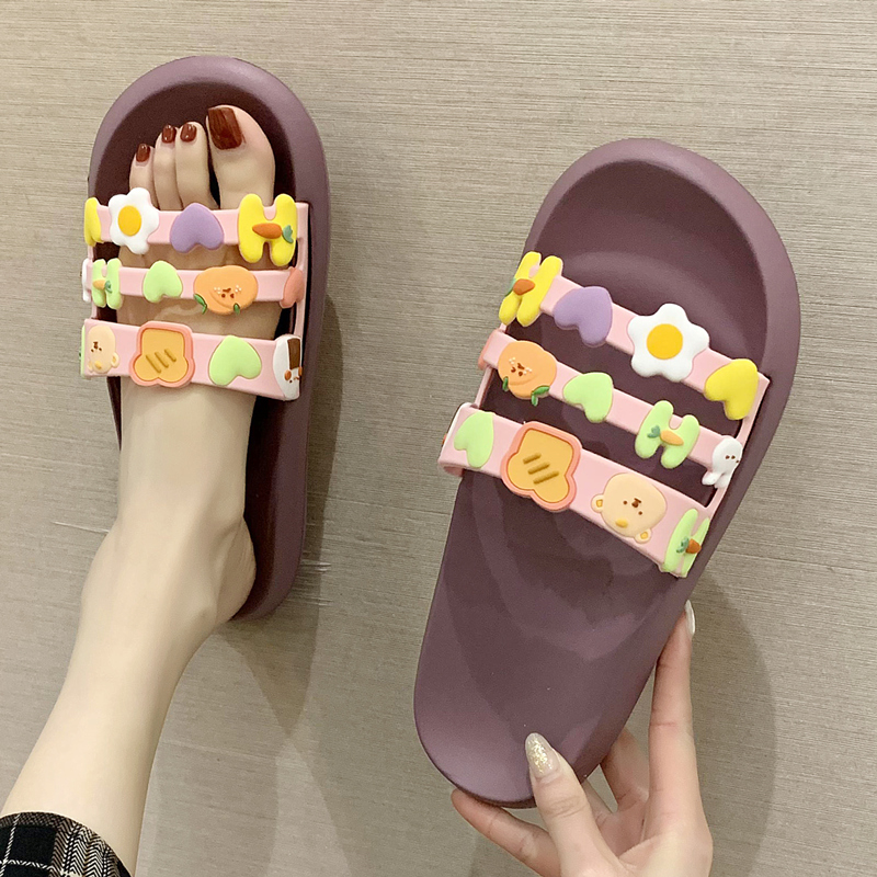 可爱卡通室内情侣一字拖 防滑沙滩凉拖韩版 厚底拖鞋 女夏外穿时尚