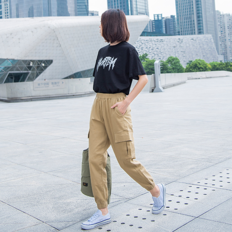 运动女裤 卡其色裤 小个子束脚休闲大码 裤 胖mm秋冬九分 子女春秋工装