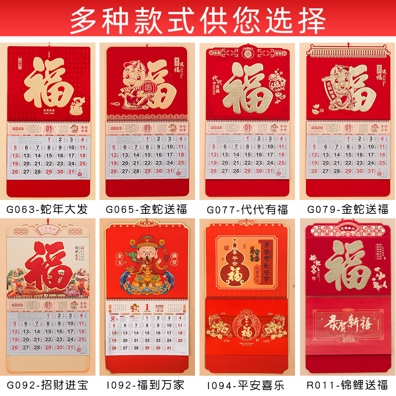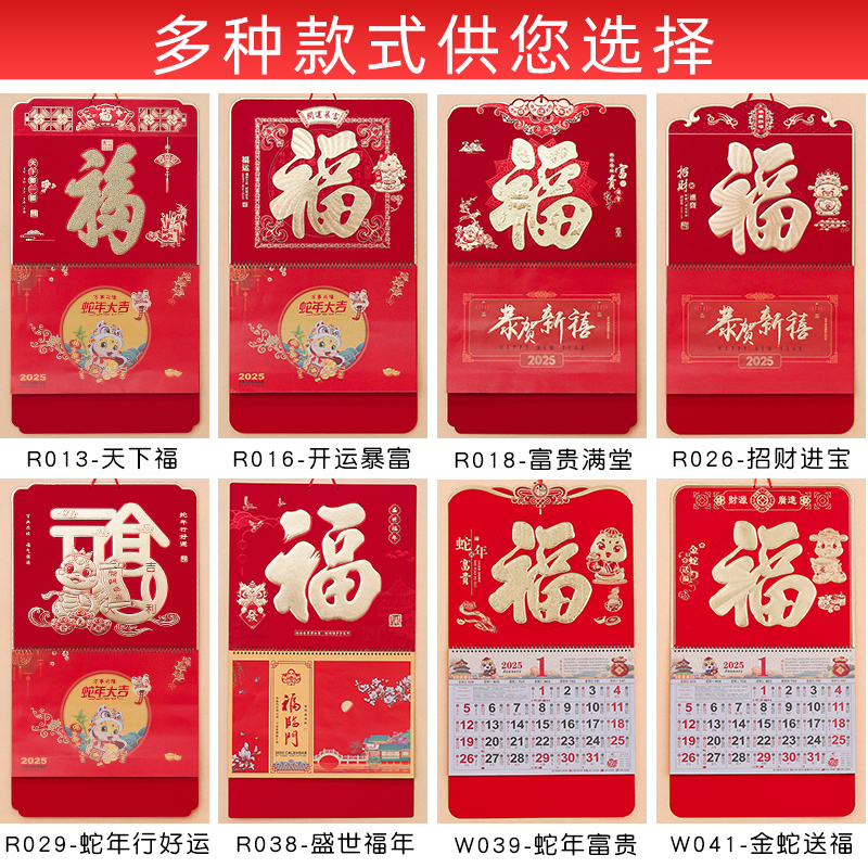 金箔福字挂历2026年新款 定制公司广告创意月历定做中国风福牌吊牌2025家用挂墙黄历大号单页简约日历马年挂历