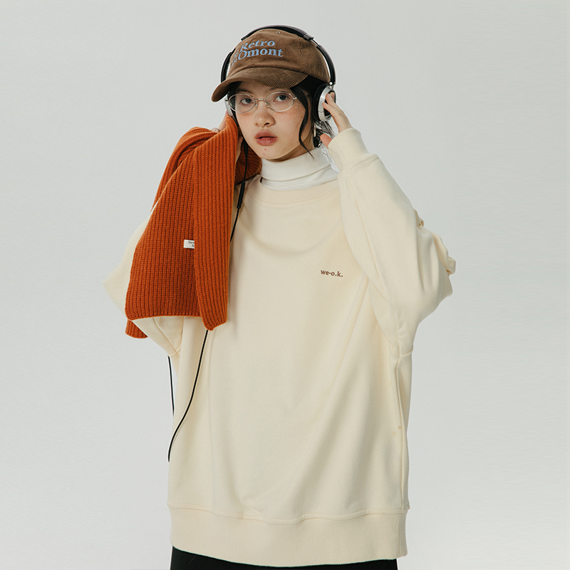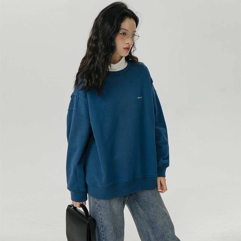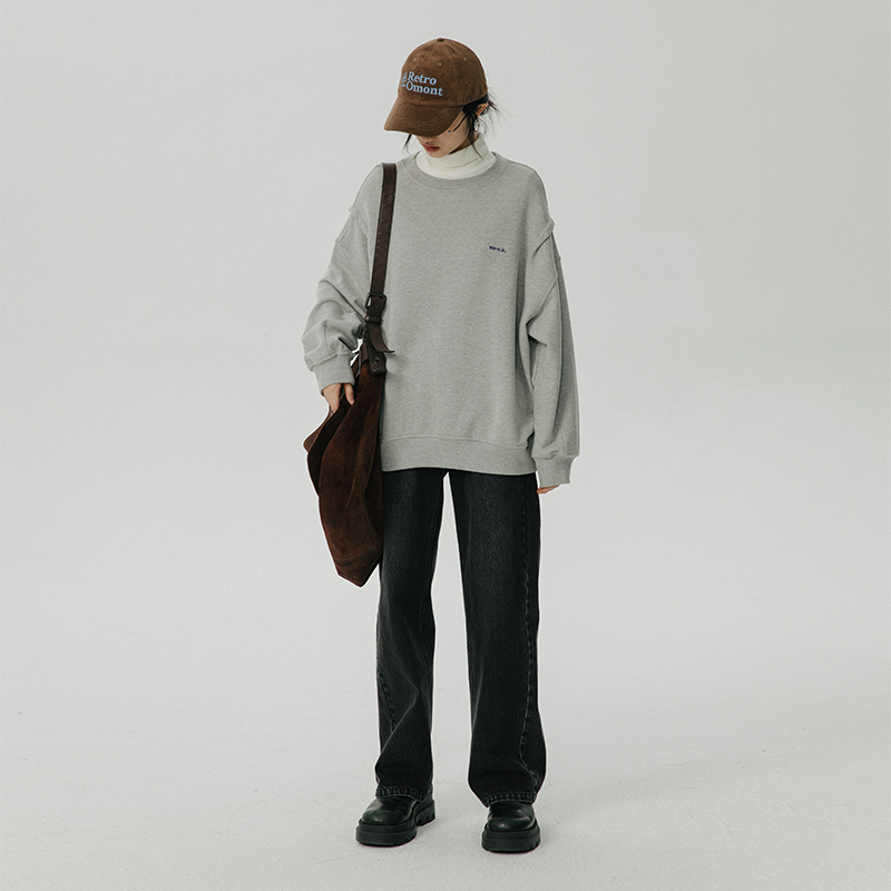 omont蛋挞家圆领灰色卫衣女春秋2022新款 宽松设计感oversize上衣
