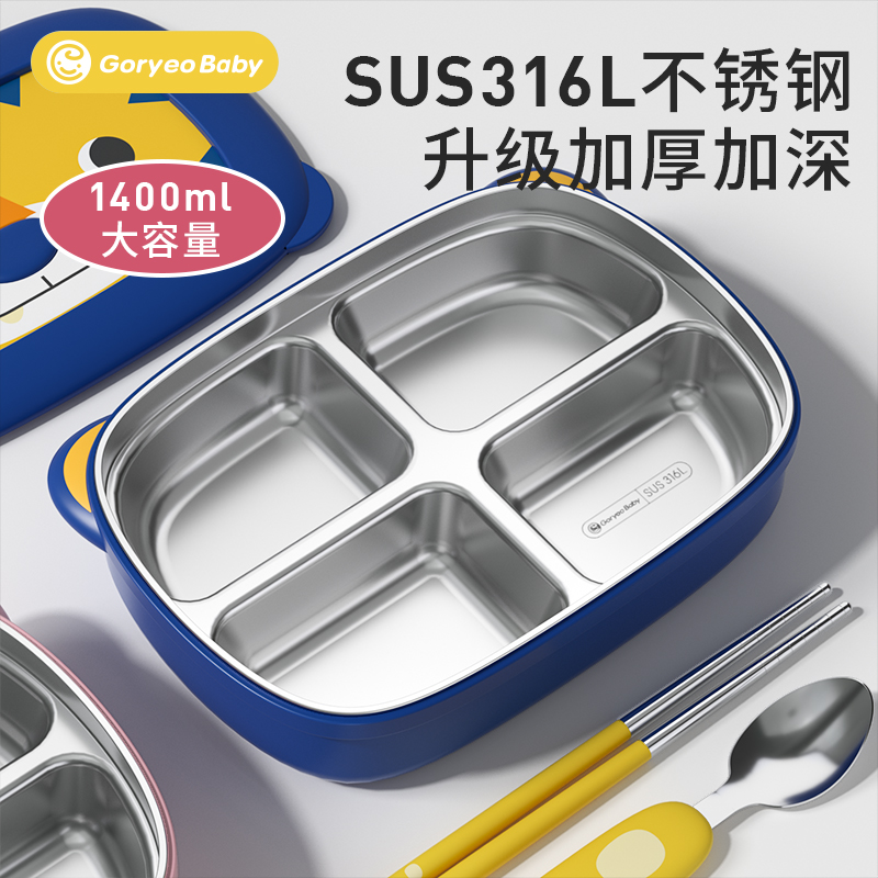 韩国316不锈钢饭盒小学生专用儿童保温分格隔便当餐盒一年级餐盘