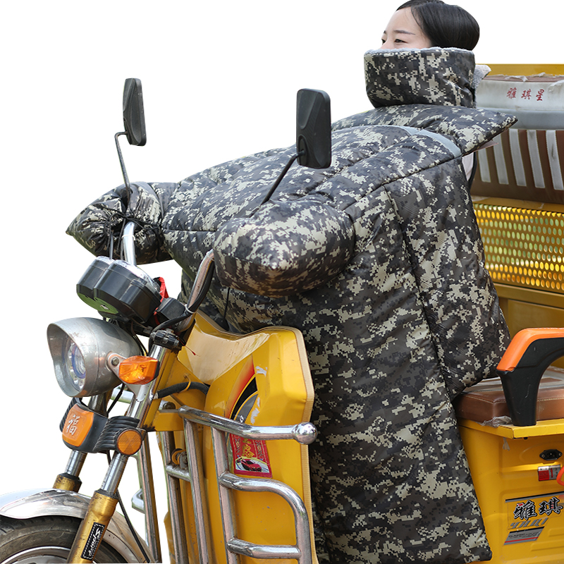电动车挡风被冬季 电瓶摩托车通用双防水防风罩 加绒加厚全包斗篷式
