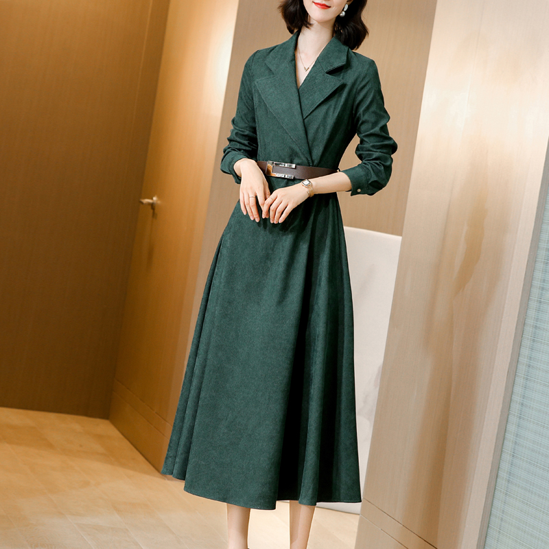 收腰风衣式 LYNEE 复古花纱羊毛中长款 精英感 连衣裙女 女总裁裙