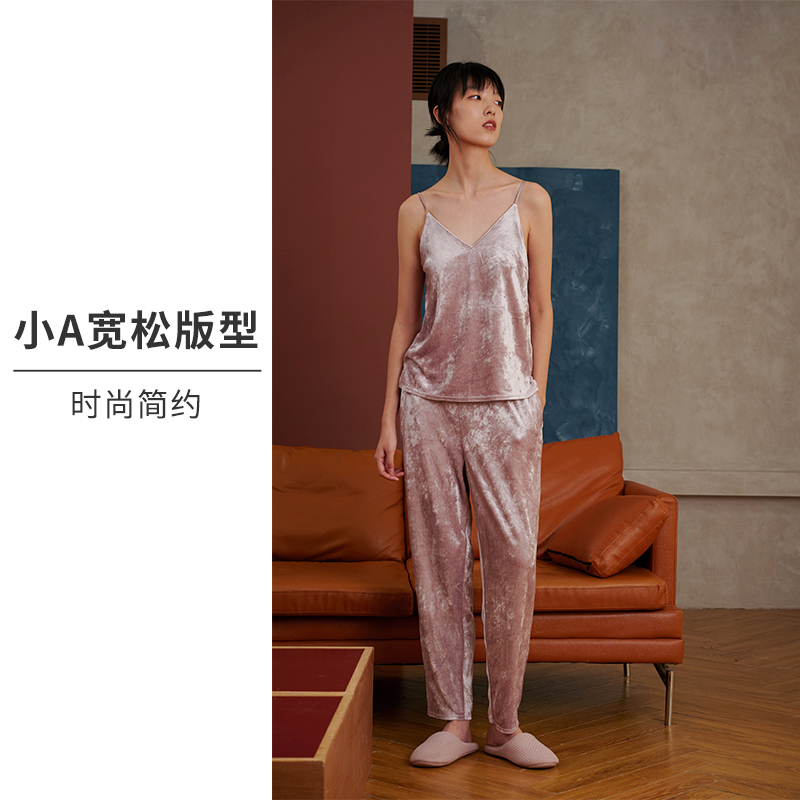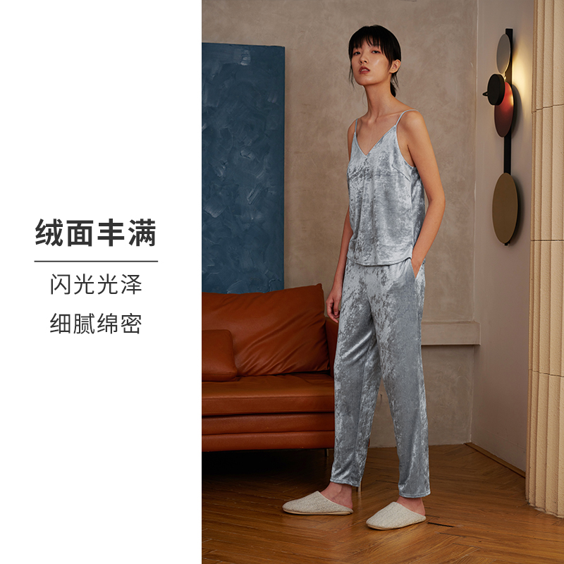 可外穿春秋家居服 女高品质天鹅绒性感V领时尚 HSIA遐 吊带睡衣套装