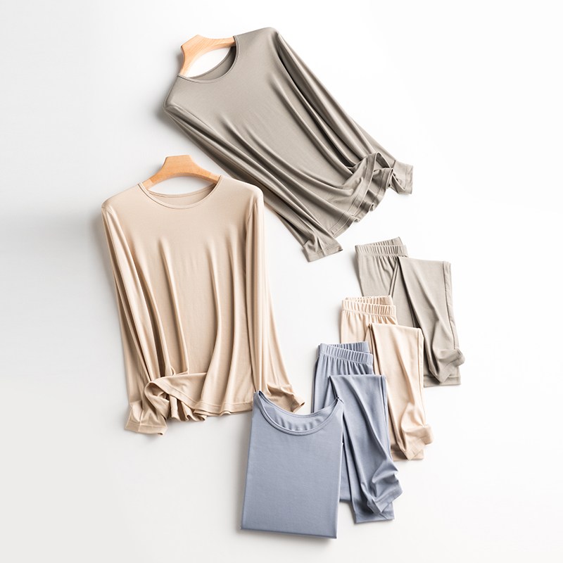 内穿打底衬衣衬裤 莫代尔秋衣秋裤 春秋季 女士薄款 红色保暖内衣 套装