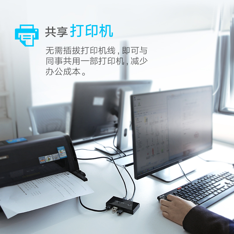 绿联usb切换器2.0两台电脑共用键盘鼠标信号显示器u盘主机台式 2进4出分配四4口分线器接口转换器打印机共享器