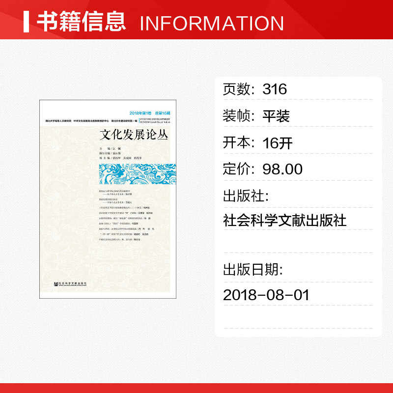 江畅主编 社会科学文献出版 社 文化发展论丛 书籍 总第16期 正版 新华书店旗舰店文轩官网 2018年第1卷