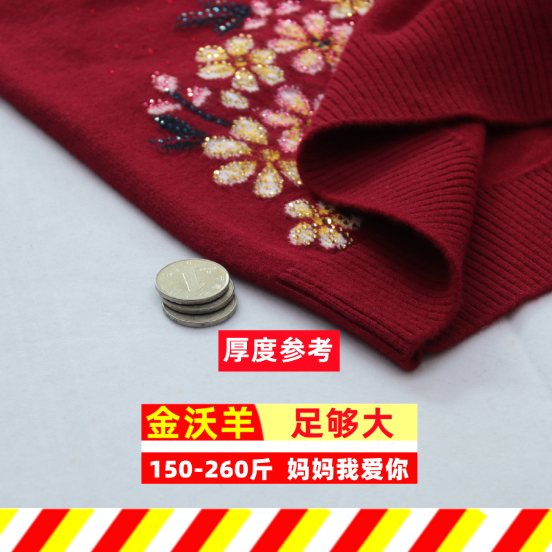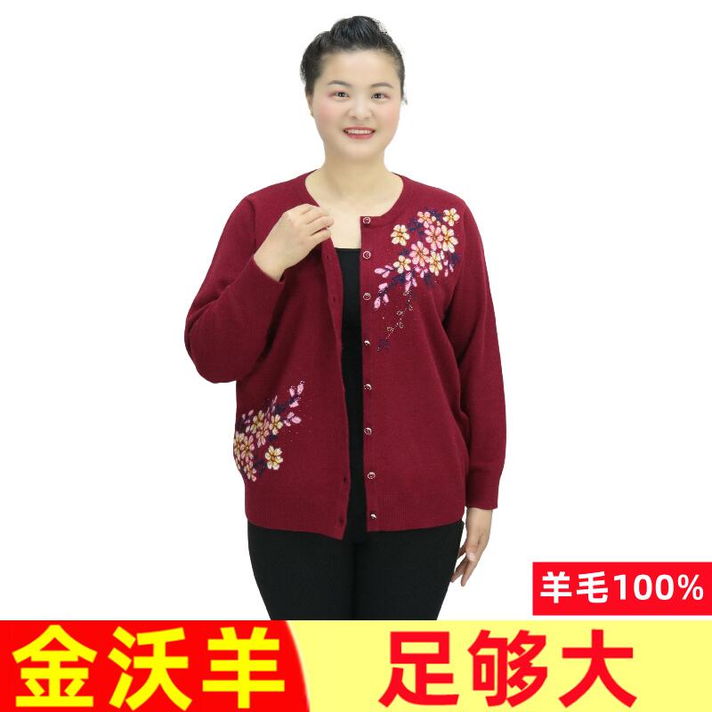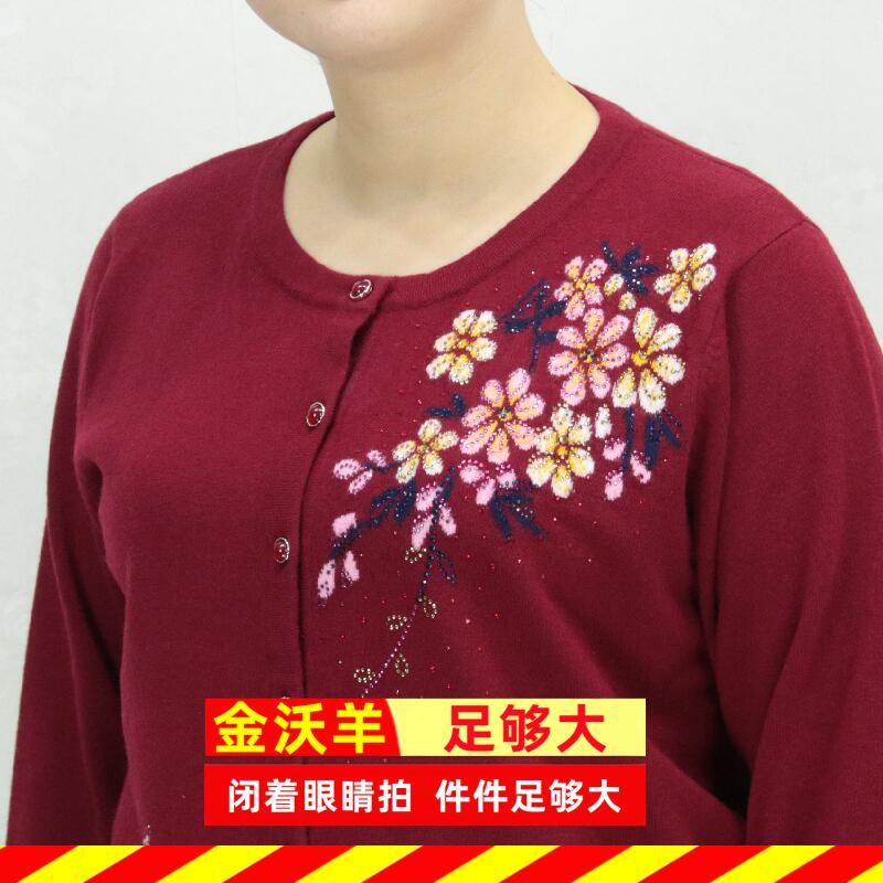 长袖 260斤100%纯羊毛衫 胖妈妈毛衣中老年开衫 女装 529 加肥加大码
