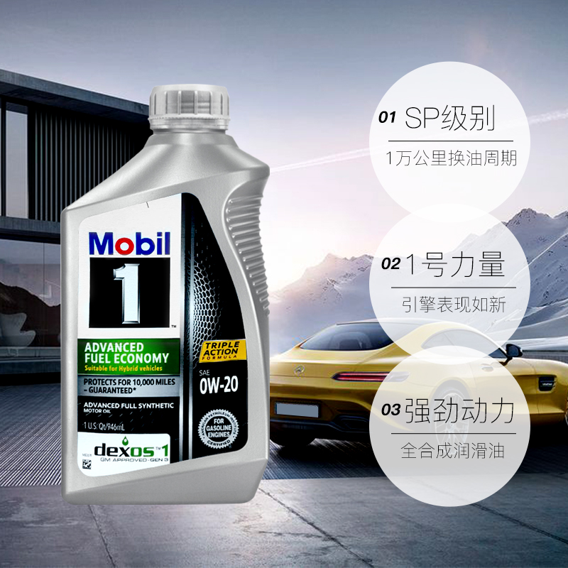 20全合成机油6QT美国原装 Mobil美孚1号0W 进口车用润滑油 自营