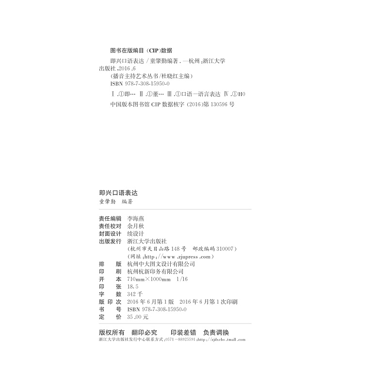 播音主持艺术丛书 浙江大学出版 童肇勤 杜晓红 社 总主编 即兴口语表达