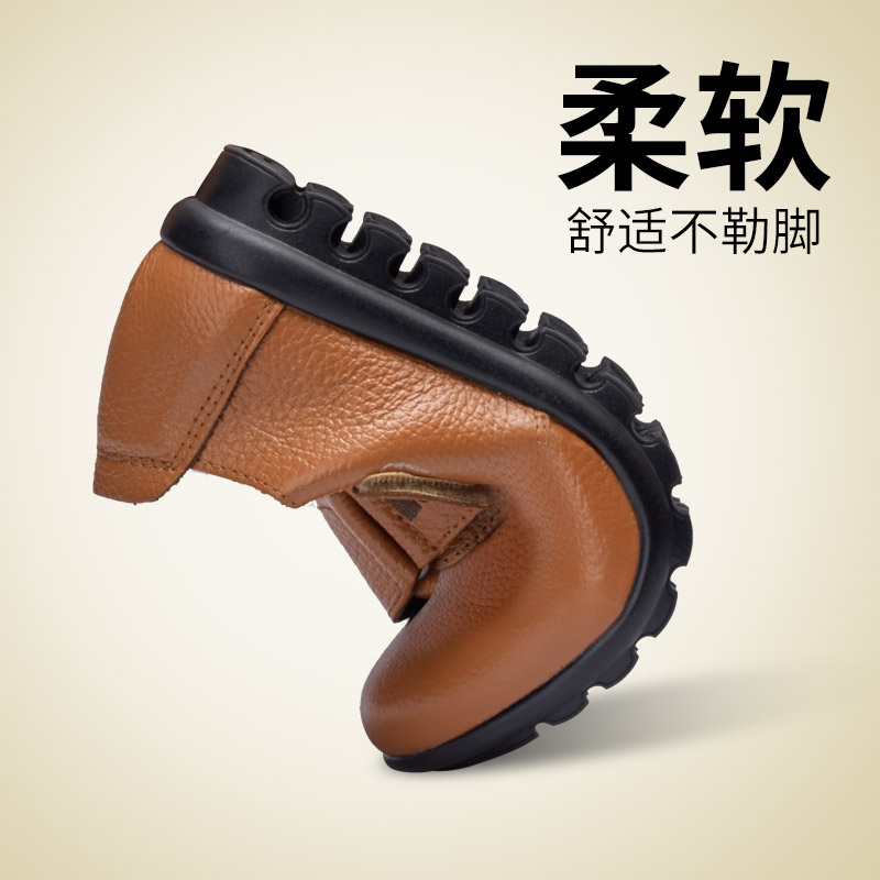 深口真皮单鞋 女鞋 老人棉鞋 加绒保暖平底中老年大码 女秋冬季 妈妈鞋