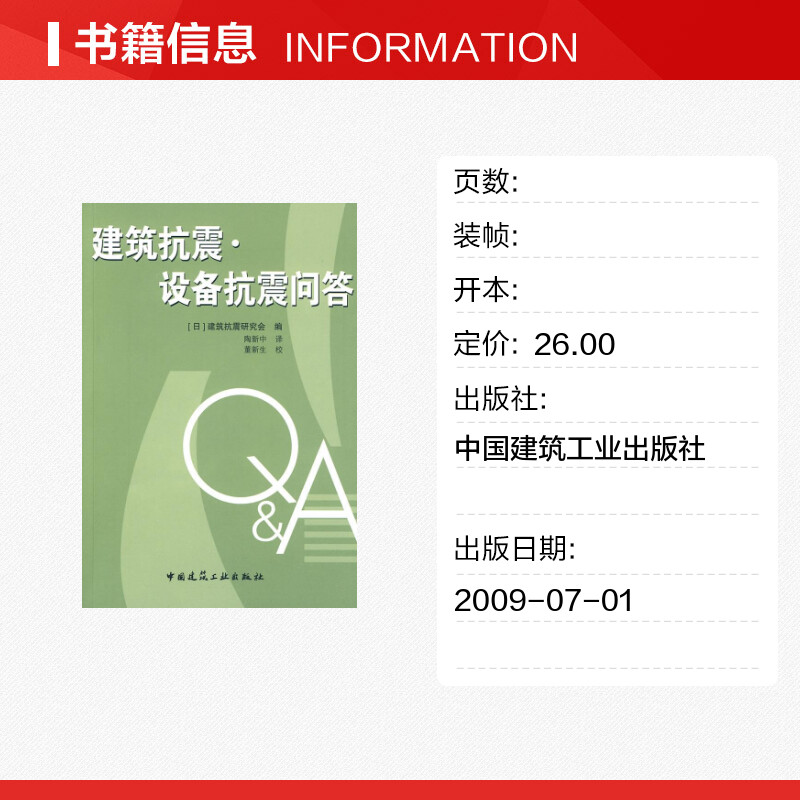 图书籍 社 著 新 专业科技 水利 著作 建筑 中国建筑工业出版 建筑抗震·设备抗震问答 新华书店正版 建筑抗震研究会