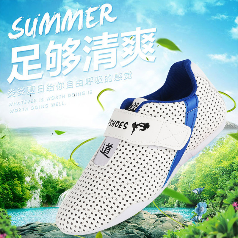 超透气孔儿童跆拳道鞋 透气耐磨橡胶软底男童女专业训练 子成人道鞋