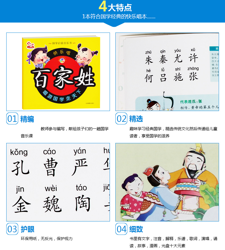 注音版 带光盘有声版 小学生儿童版 课外阅读书籍幼儿园用书一二年级课外书读国学版 2年级国学启蒙幼儿读物 快乐唱百家姓 正版