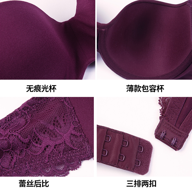 ubras红山茶大胸显小内衣收副乳防下垂无痕薄款 粉底液秋文胸罩女