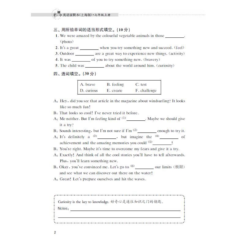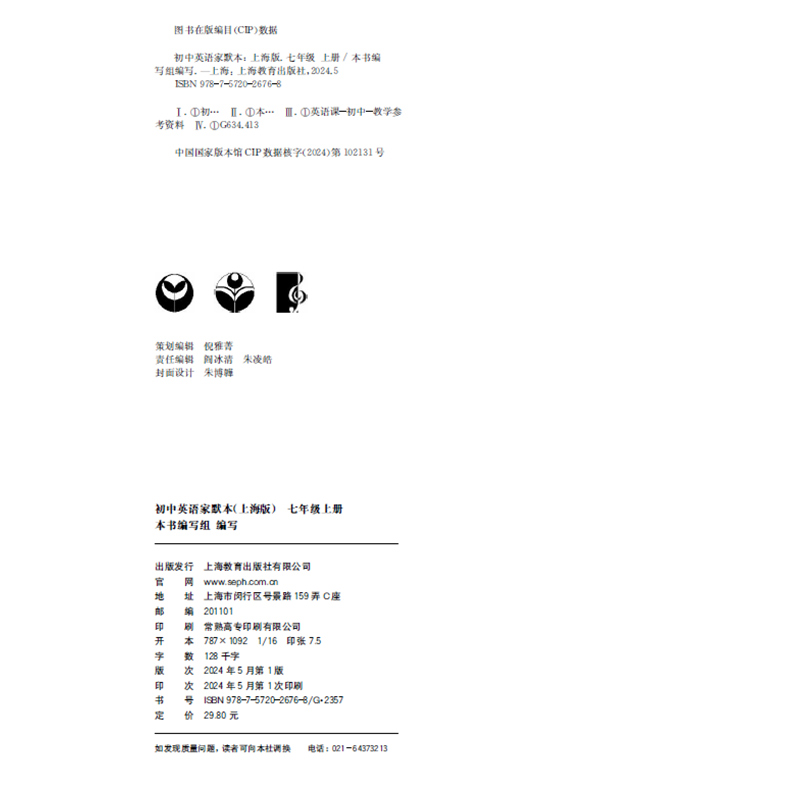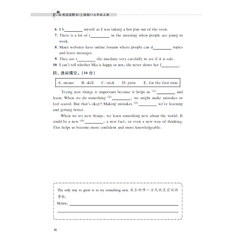 初中英语家默本七年级上册7年级第一学期英语书写默写本上海新教材同步初中初一上册课本同步训练含答案